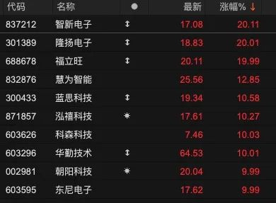 消费电子概念盘中发力走高。截至发稿,隆扬电子、福立旺以20%幅度涨停,蓝思科技、东尼电子等纷纷跟涨。
